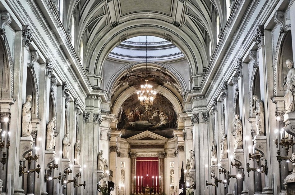 L'interno della Cattedrale, che ha subito profonde trasformazioni tra la fine del Settecento e i primi dell'Ottocento, è a croce latina con tre navate divise da pilastri con statue di santi che facevano parte della decorazione della tribuna del Gagini.