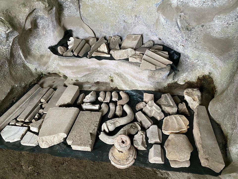 Alla Grotta di Eolo, comunque, si entra tramite un cancello molto semplice che non lascia immaginare il fascino degli spazi in cui introduce. Dopo decenni di abbandono, grazie alla pulizia e al ripristino degli ambienti, potrà tornare presto fruibile per il pubblico. Sono stati rimossi i rovi e le erbe infestanti, e la grotta è tornata ad essere suggestiva, rivelando anche un piccolo tesoro di pezzi scultorei, probabilmente degli anni '70. Si tratta di 300 pezzi - arti, capitelli, foglie d'acanto, fregi e stemmi - appartenuti ai gruppi scultorei del Parco Reale, rinvenuti in parte anche nella macchia boschiva e nei depositi.