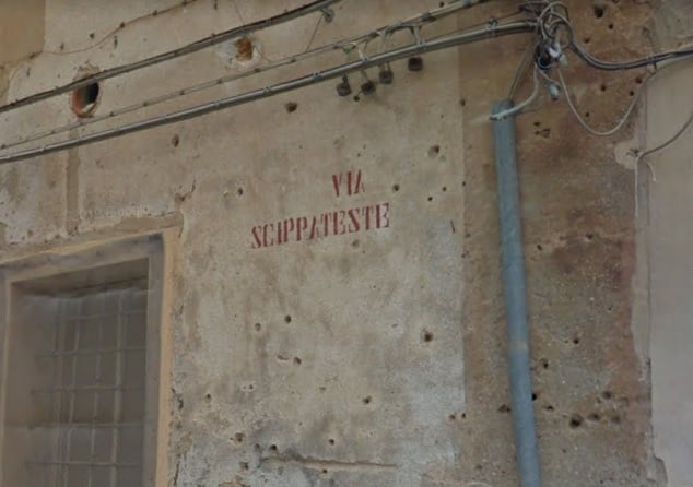 Si tratta di via Scippateste, una via di Palermo, situata nel quartiere del Capo. Attorno a questa strada ruota una leggenda popolare, risalente allo scorso secolo, e che spiega il perché di un nome così bizzarro. La motivazione, e questa è la parte più divertente, sarebbe da collegarsi a un matrimonio finito in "corna".