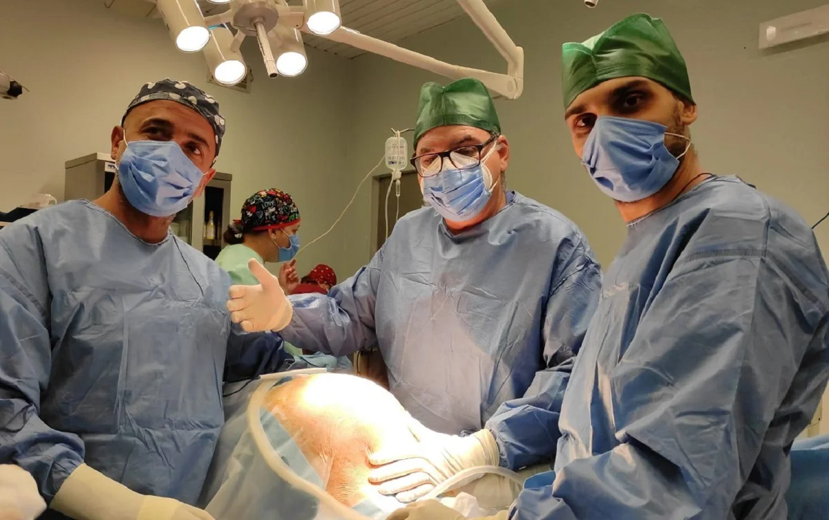 A eseguire lo straordinario intervento chirurgico il 13 agosto l' equipe composta dal Prof. Luca Maria Schonauer, specialista in Ginecologia, con la collaborazione del Dott. Giuseppe Muzzupapa e del Dott. Nico Picardi. La dott.ssa Katarzyna Trojanowska, specialista in Anestesia e Rianimazione, coadiuvata dalla collega dott.ssa Eva Moretti, si è occupata della condotta anestesiologica (la paziente era ad altissimo rischio anestetico). Al lavoro in sala anche tutto il personale del settore: strumentisti, infermieri, operatori sociali e sanitari che hanno contribuito al risultato.