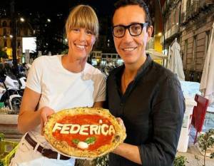 E' stato Gino Sorbillo, proprietario della storica pizzeria napoletana, a pubblicare sul proprio profilo social la foto con la 'Divina', all'esterno del proprio locale sul lungomare Caracciolo: la foto li raffigura sorridenti mentre mostrano la pizza fatta apposta per lei, una margherita con su scritto 'Federica', una vera dedica in mozzarella DOC!