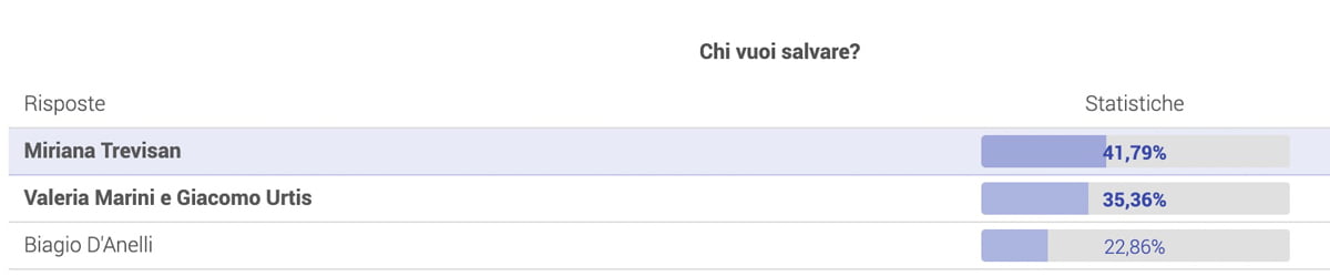 Il televoto di questa settimana è positivo (ecco perché ai telespettatori viene chiesto di rispondere alla domanda "Chi vuoi salvare?") E i sondaggi sembrano abbastanza chiari: Biagio D'Anelli potrebbe essere il peggior trasgressore. Andrà così?