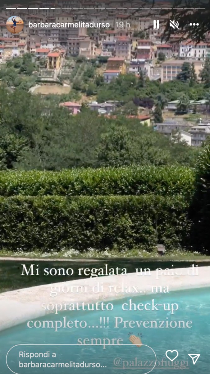 Solo qualche ora fa, la conduttrice partenopea ha voluto condividere una stories sul suo profilo social. In questa stories Barbara racconta di essersi concessa due giorni di relax e di aver voluto di contesto fare un check completo nella città di Fiuggi. La conduttrice come spesso fa anche all'interno dei suoi programmi lancia un messaggio molto importante. Ricordare che la prevenzione è qualcosa di estremamente importante per la salute di ognuno di noi.