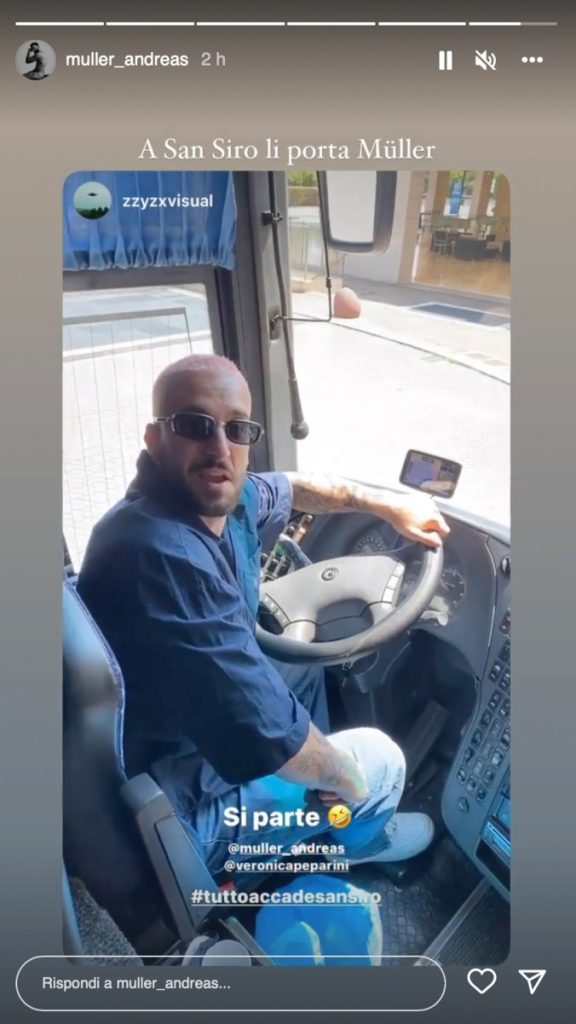 Proprio Veronica Peparini e Andreas Muller si sono occupati di tutta la messa in scena e le coreografie del corpo di ballo al Tutto qui accade tour della salentina. Sarà uno show pazzesco ma Muller è stato ripreso in altre faccende a poche ore dal debutto. Il ballerino è alla guida di un pullman che probabilmente trasporterà il corpo di ballo allo stadio di Milano.
