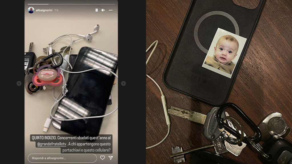 In una delle storie più recenti del giornalista e presentatore Mediaset, infatti, vediamo un paio di cuffie, un mazzo di chiavi, un ciucciotto di colore rosa e un cellulare. Potrebbero appartenere a chiunque, certo; eppure, tempo fa Antonino Spinalbese aveva pubblicato una foto sulla sua pagina Instagram molto molto simile a quella pubblicata da Signorini.