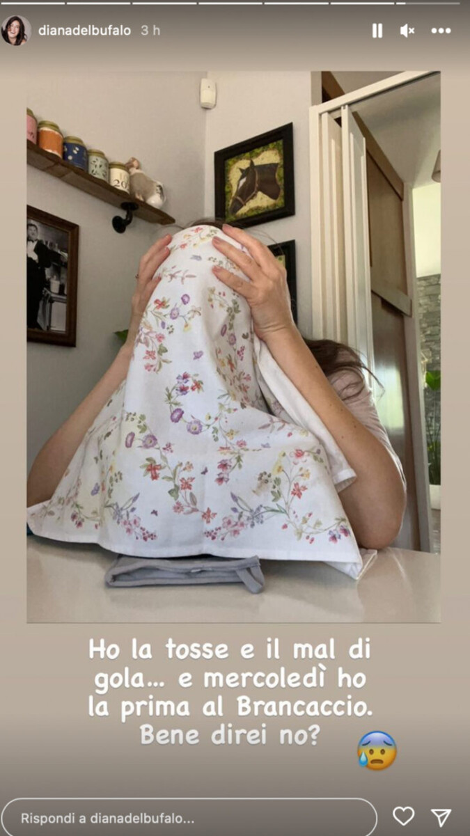 Diana ammette di aver un terribile mal di gola proprio a pochi giorni dal sul debutto in teatro. Come tantissime persone ha deciso di ricorrere ad un rimedio della nonna: i vapori. Bollendo l'acqua e aggiungendo degli oli essenziali e delle erbe. Il calore aiuta a sciogliere tutti i muchi e a liberare i bronchi, in più grazie ad alcune erbe particolari come la menta o eucalipto, si riesce ad avere un immediato sollievo alla gola.