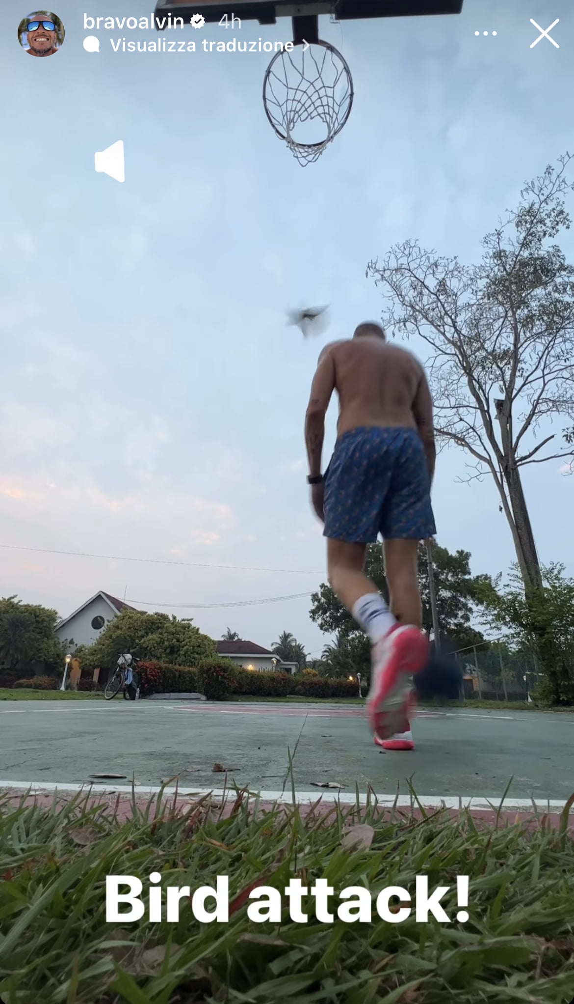 Alvin è stato attaccato inaspettatamente da un piccolo uccello. L’animale scende in faccia di picchiata sulla testa dell’inviato che si stava dirigendo verso il canestro. Per fortuna non è successo nulla di grave, si tratta solamente di un piccolo incidente accaduto inaspettatamente anche proprio nel momento in cui Alvin stava condividendo una storia sul suo account ufficiale di Instagram. Del resto il programma è anche questo: entrare in contatto con la natura.