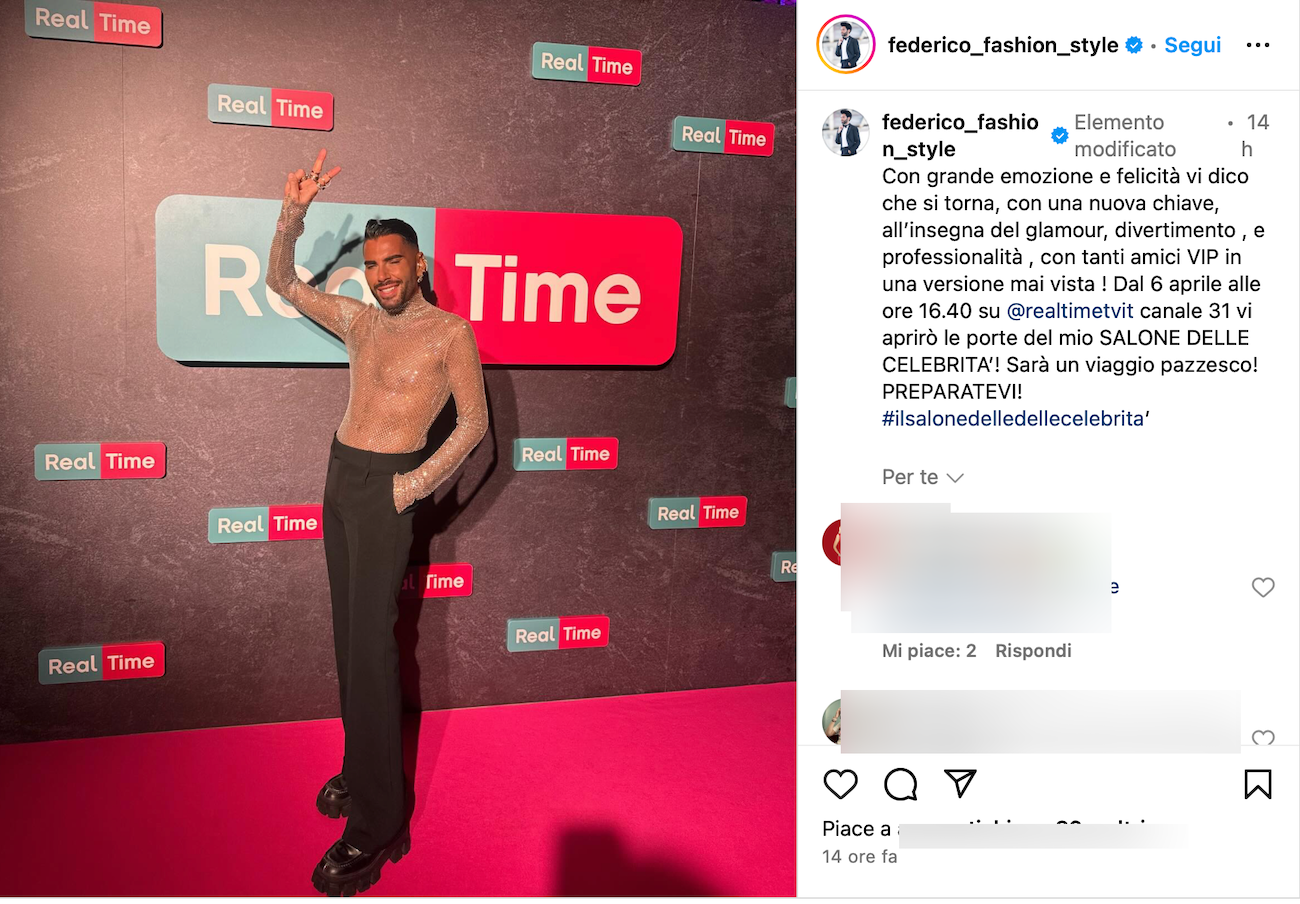 Lo abbiamo visto ospite a Verissimo e altre trasmissioni dove ha raccontato la sua storia, le sue emozioni e i suoi obiettivi per il futuro, aprendo il cuore ai suoi follower e fan che lo seguono sempre numerosi. Subito dopo Pasqua inizierà questa nuova avventura sul piccolo schermo grazie a Real Time, ma ci saranno novità in stile Federico Fashion Style che sicuramente non deluderanno le aspettative del suo pubblico.